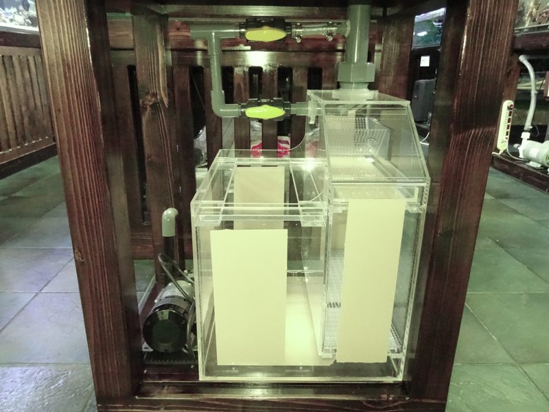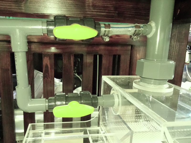 配管もボールバルブを2個使用し、水替えの時はポンプを止めずにろ過槽だけの循環に切り替え可能。バクテリアも死なせる心配がありません。