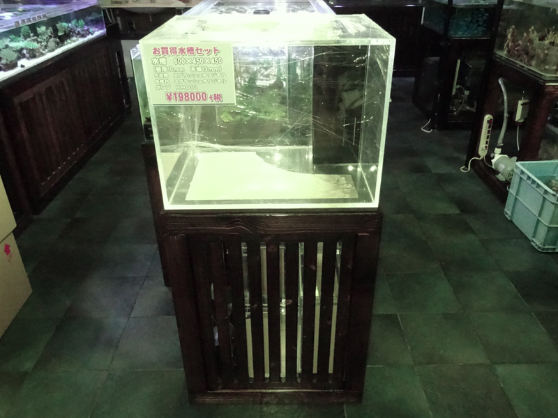 サイズは600×450×450。水槽、台、ろ過槽、ポンプのセットです。