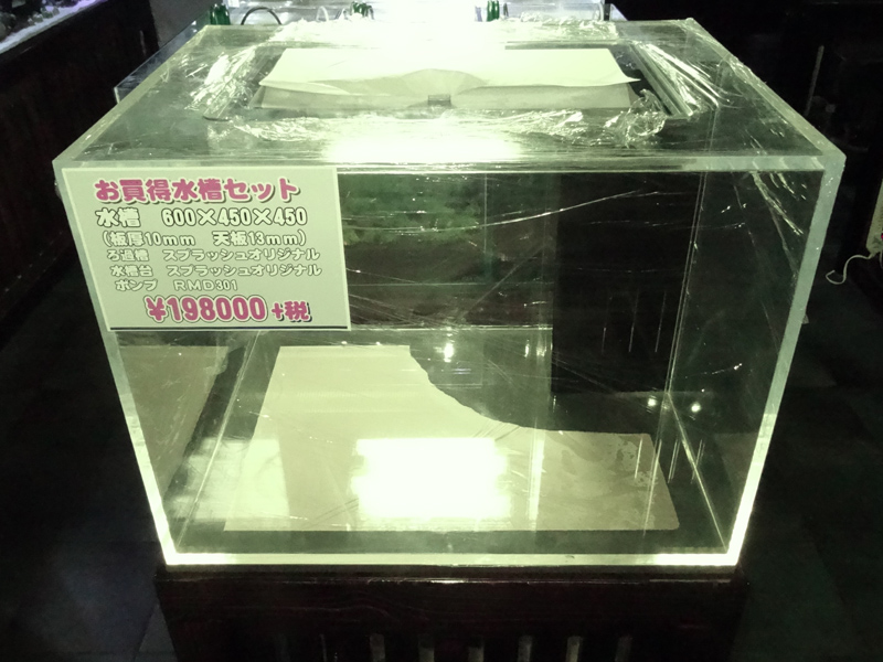 アクリルの厚みは10mm、天板は13mmです。この板厚の水槽セットでこの価格は大変お買得です。今回1台限りの特価品です。気になる方はスプラッシュ本店までお問い合わせ下さい。