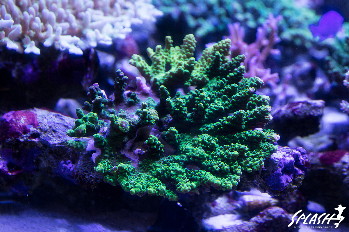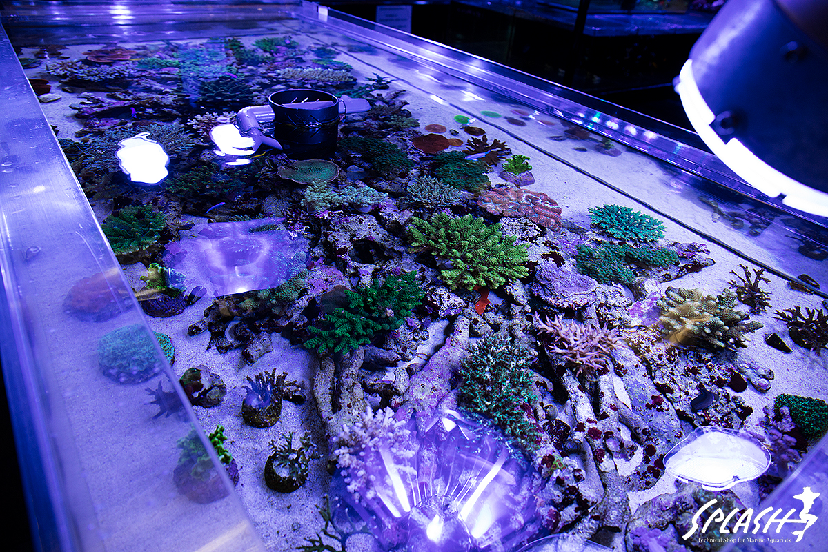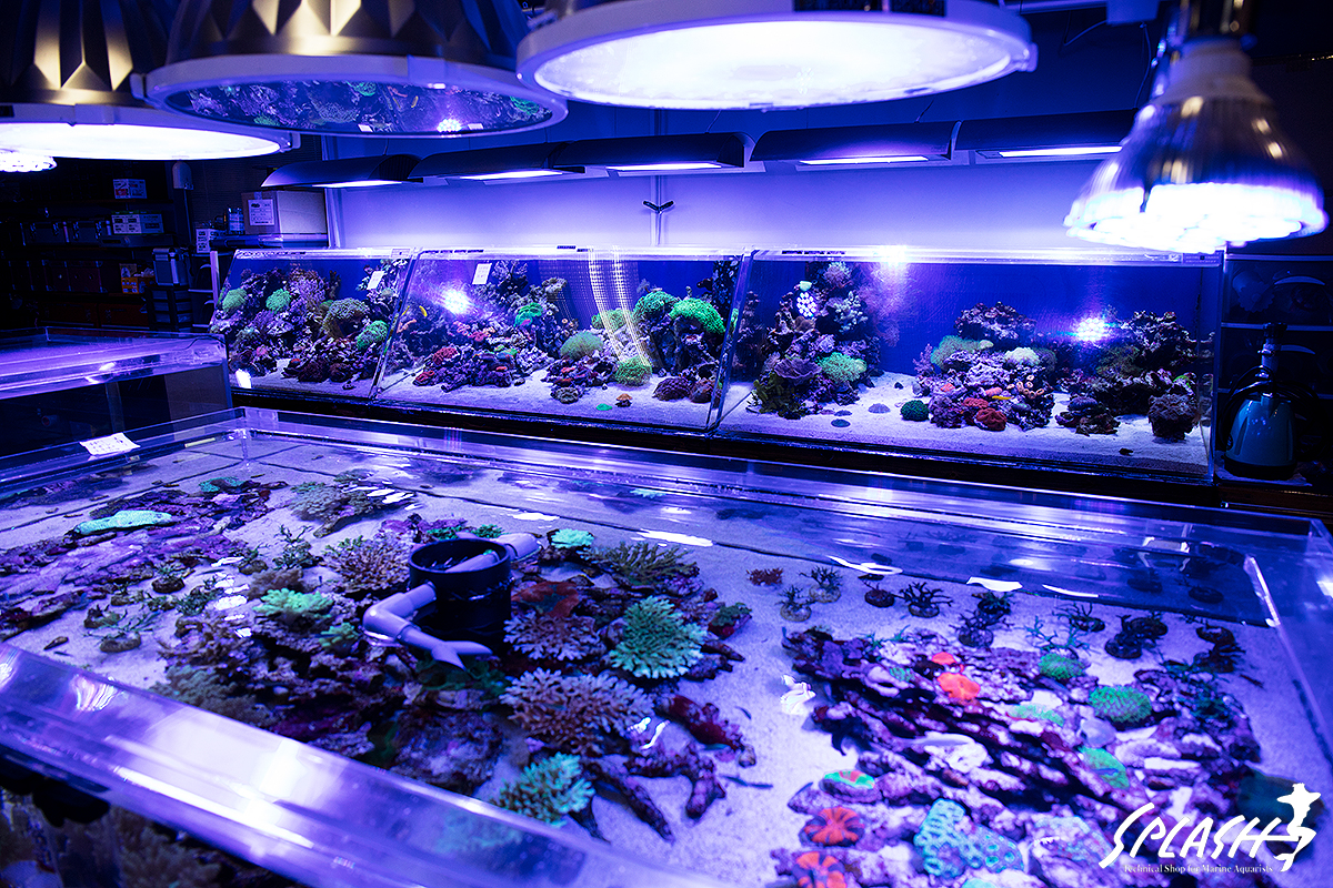 スプラッシュ本店では、ナガレハナ、ミドリイシ、スコリミアなどなど珊瑚から、海水魚まで状態バッチリの生体が盛りだくさんです。
