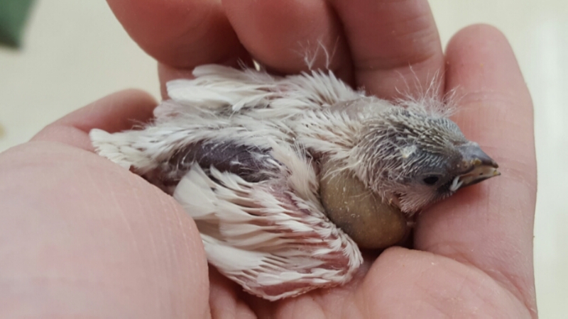 キンカチョウ雛と爬虫類