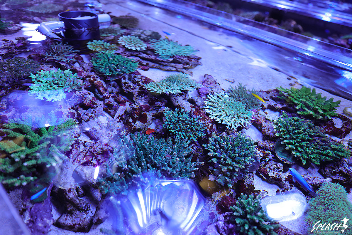 スプラッシュ本店では、サンゴはもちろん、ハナゴンベ、可愛いチェルブピグミーエンゼルやルビードラゴネットなどなど、人気の海水魚も続々入荷中です。