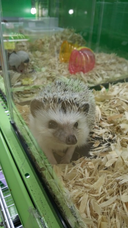 ハリネズミの男の子です。ちょっと怖がりさんですが触れます❗ビビりの割には安心しきっていつも寝てますが…(^^;