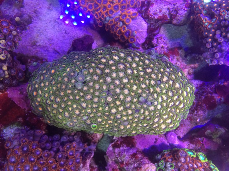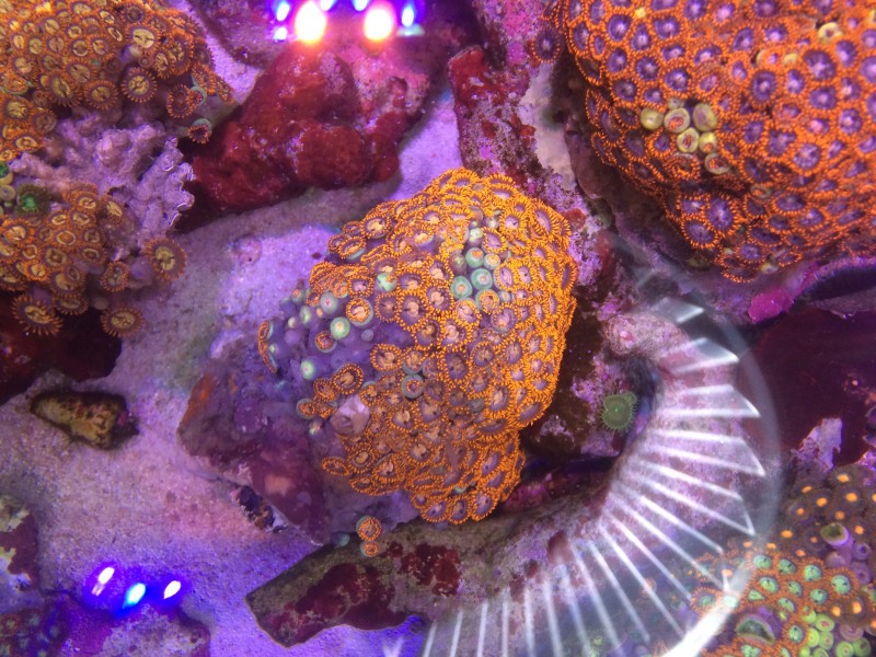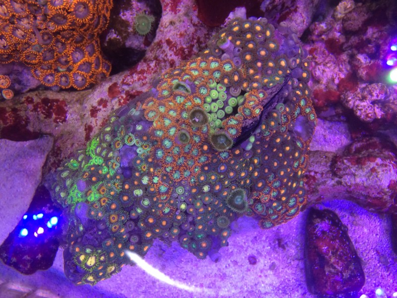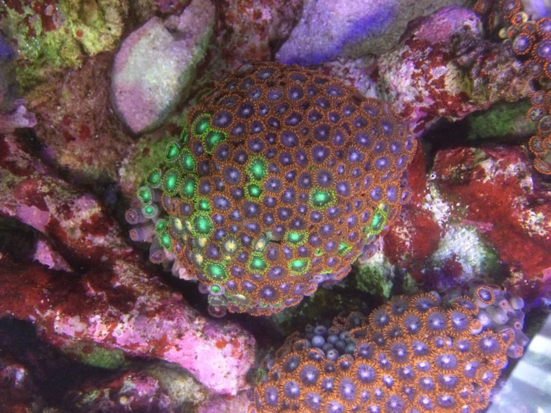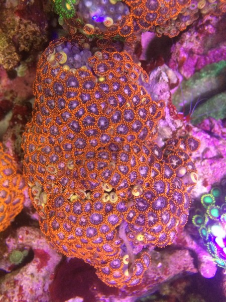 この個体はオレンジ強めです。平たい岩に着いてます。