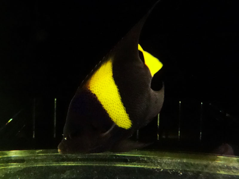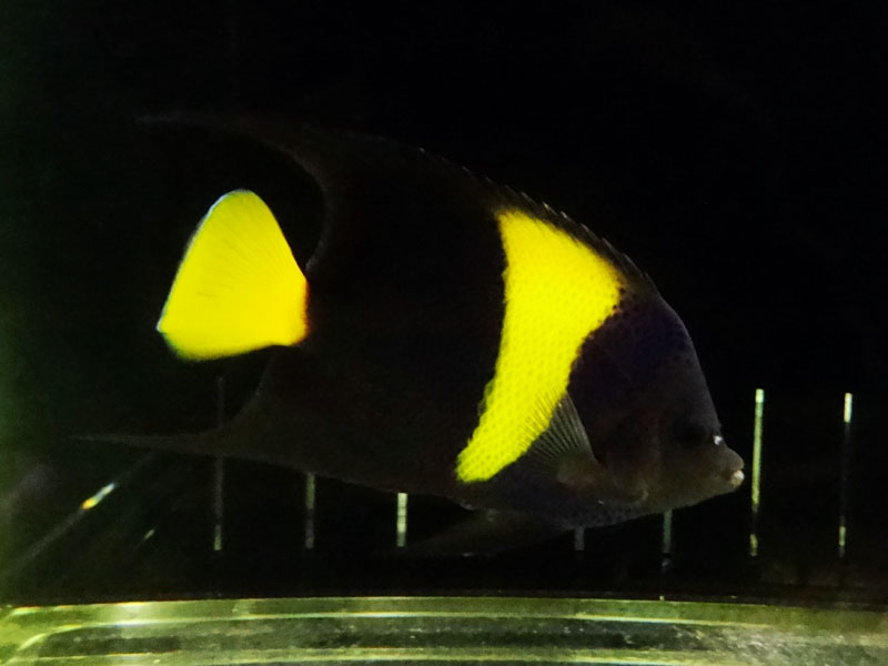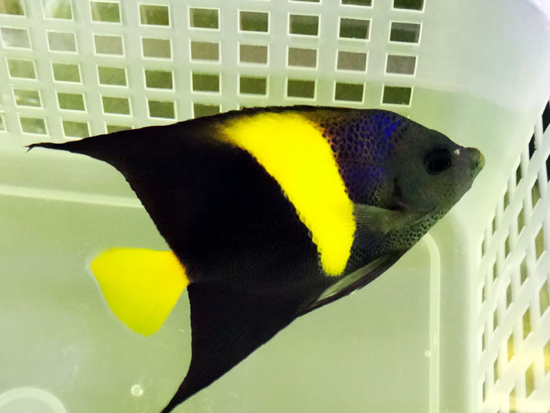 まずはアズファー。濃紺の体に黄色の三日月柄が入る大型ヤッコです。紅海便での入荷です。