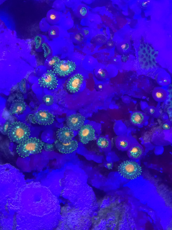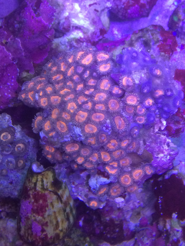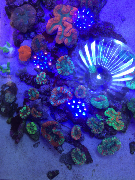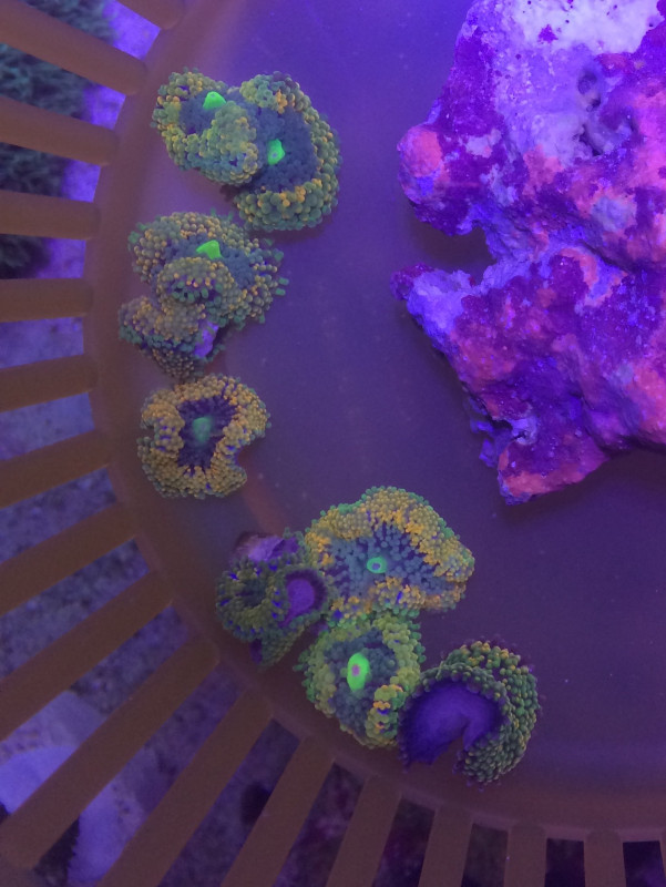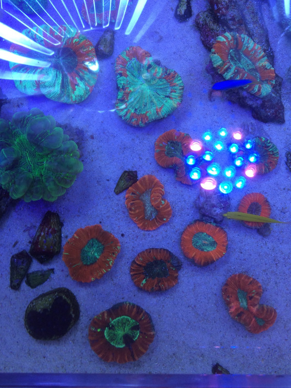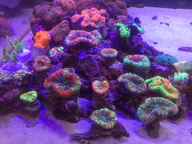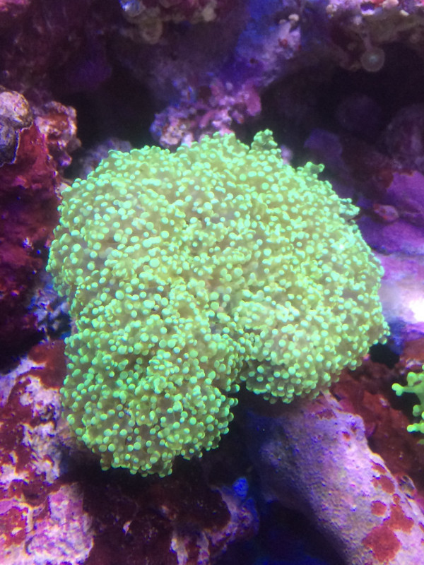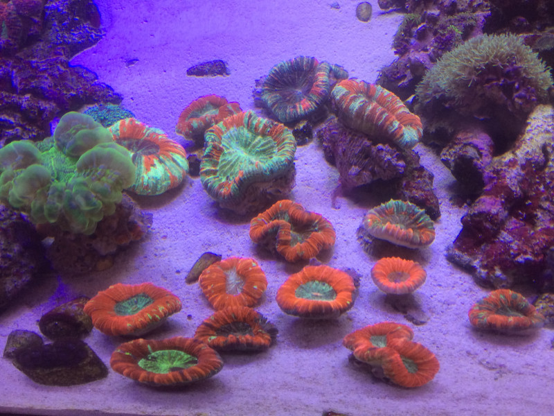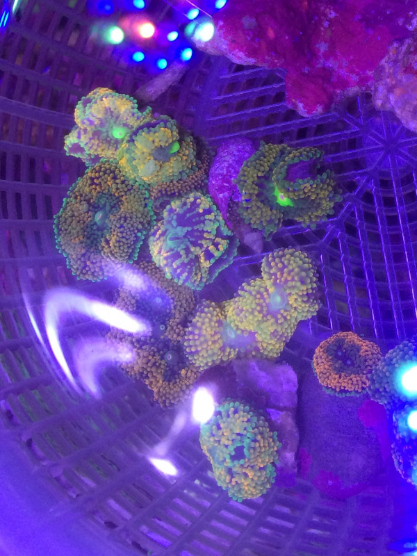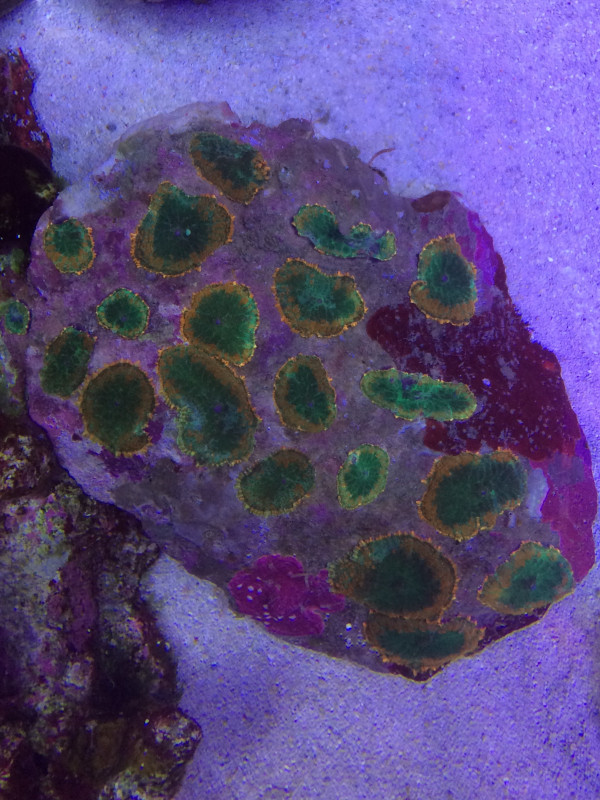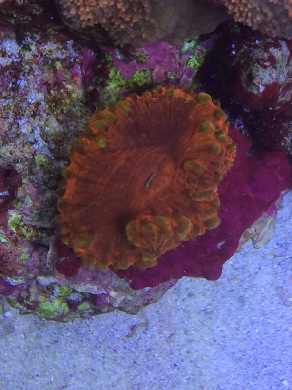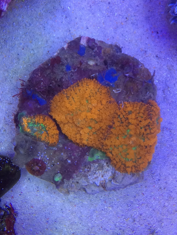 ディスクコーラルオレンジグリーン。一つの岩に沢山着いています。