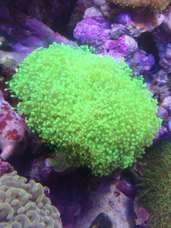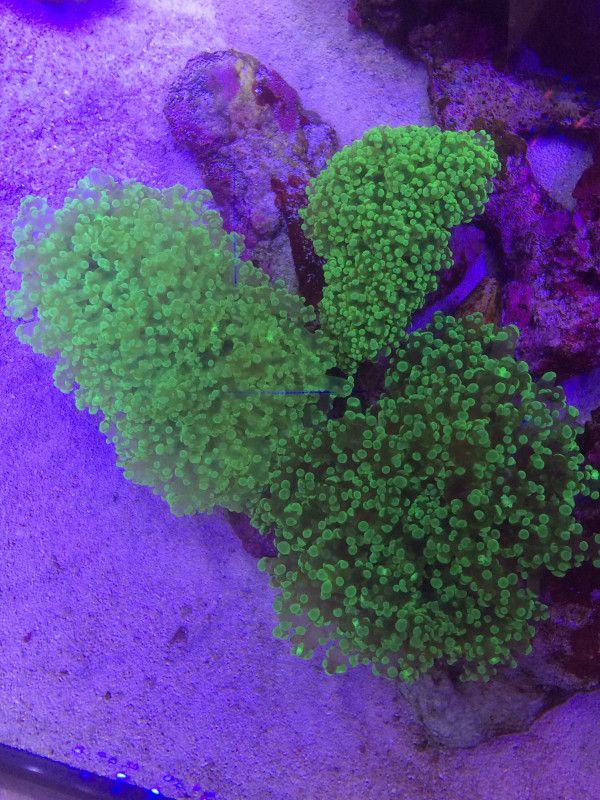 タコアシサンゴクリアーグリーン。あまりにも蛍光色が強くてピント定まりません。