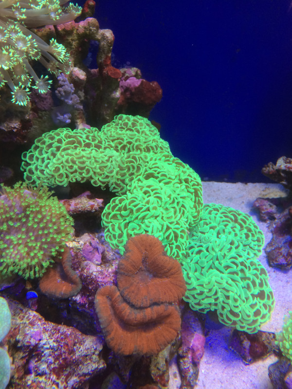 センターオレンジ。触手がグリーンでその間の色がLEDでブルーに見えます。