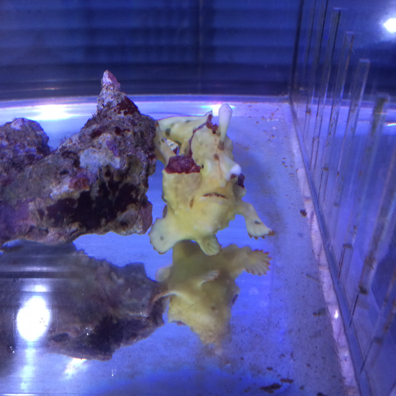 クマドリカエルアンコウイエロー。小魚をパクっと丸のみです。