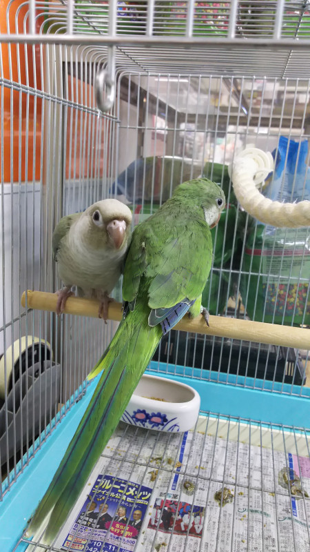 2017年7月21日 / 最終更新日 : 2017年7月21日 / 総閲覧数: スプラッシュ 雛からあがりました! 以前ご紹介した、ホオミドリアカオウロコインコのブルーシナモンとオキナインコの雛が自分で餌を食べるようになってカゴに移りました! ウロコインコは警戒心が少なく好奇心旺盛でとても人懐こいです! オキナインコはまだカゴに移った緊張もあるのか、様子を伺いながら出てくる感じですが(^^; まだまだこれからの2羽なので性格などもどうなるか楽しみなコ達です(^^) 同時にカゴへ行けたので今のところは同じカゴに入ってますが、甘ったれのオキナとお世話焼きのウロコで仲良しです(^^)