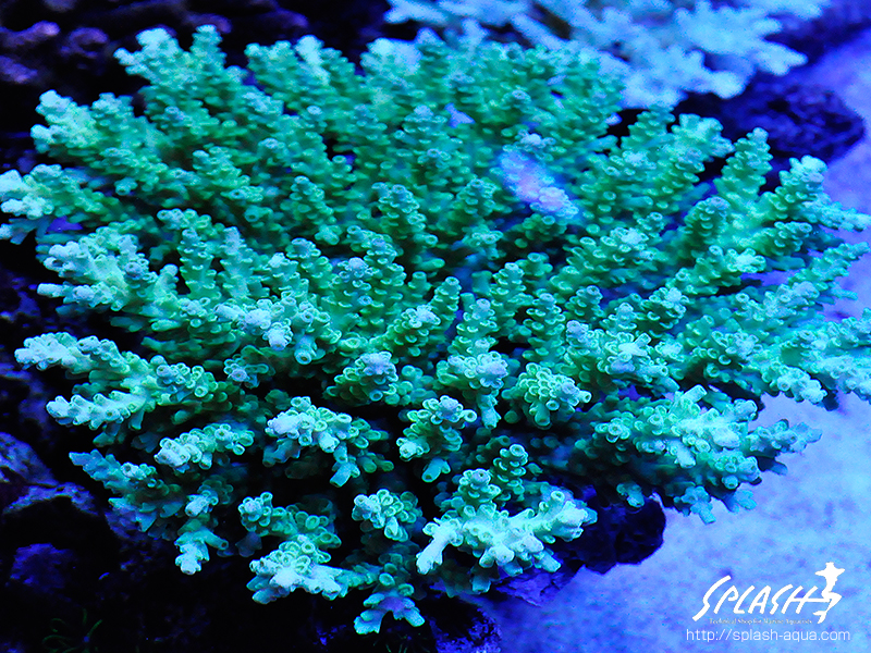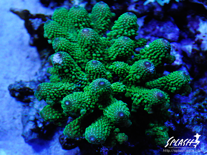オヤユビミドリイシです。もの凄く綺麗に色上がっています。ギラギラです。