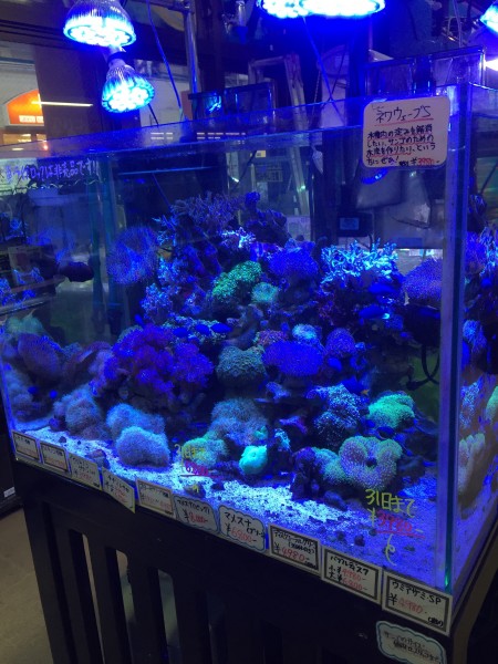 写真はソフトコーラル什器ですが当社オリジナルLEDのみを使いあえて魚を多めに入れ硝酸塩を少し高めています!