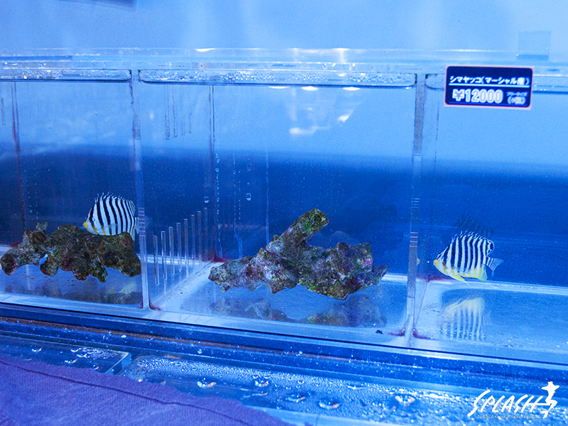 スプラッシュ本店では、現在2匹のマーシャル産シマヤッコの在庫がございます。