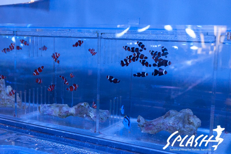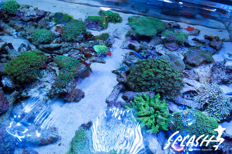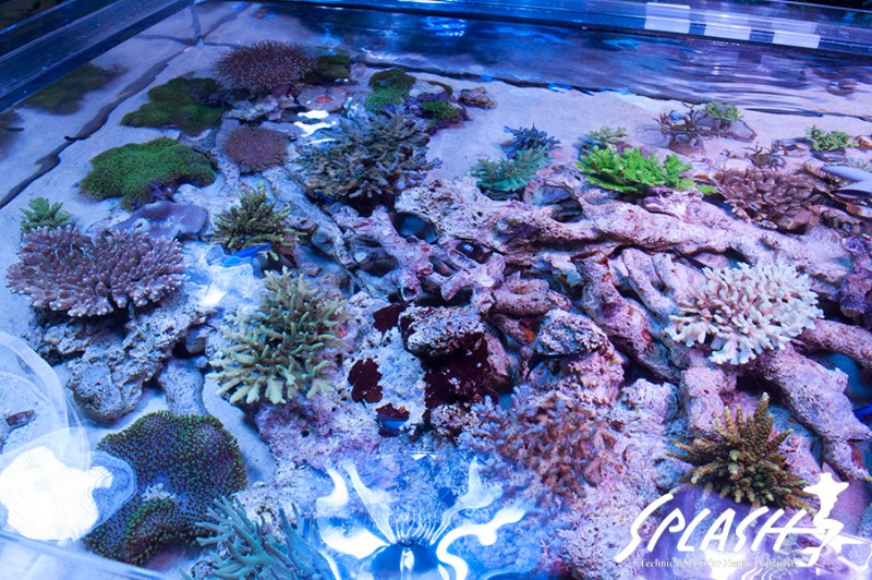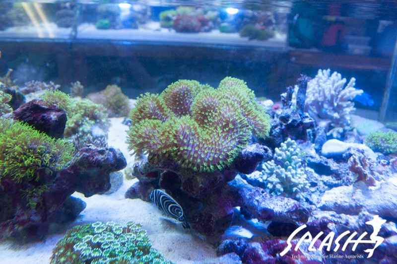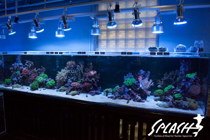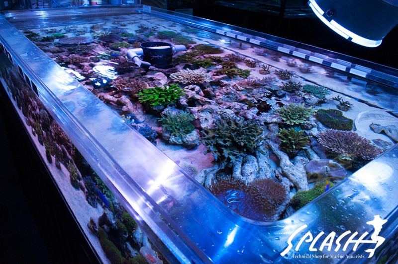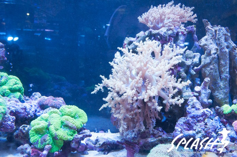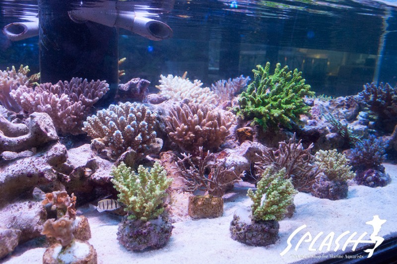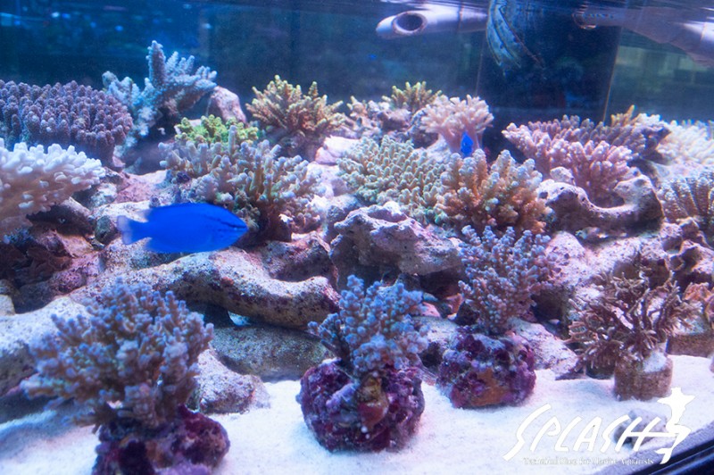 周辺の水槽にディスプレイされている枝状ライブロックも販売可能なものがございますので、ご希望のお客様は、スタッフまでお声がけください。